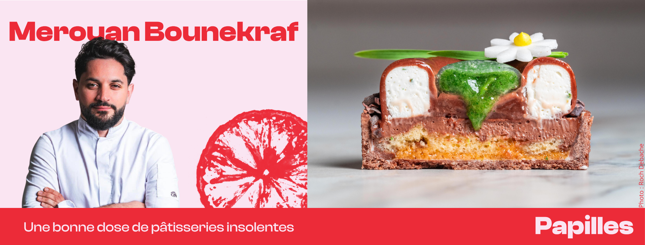 De l’insolence, parfaitement dosée. Un dessert qui s’appelle “la petite merde” mais qu’on termine jusqu’à la dernière cuillère. Un chocolat de Pâques transformé en machine à sous… oui, ses pâtisseries ressemblent parfois à des blagues devenues réalité. Vous l’aurez sans doute deviné, aujourd’hui nous rencontrons Merouan Bounekraf. Chef cuisinier passé par Top Chef, Merouan s’est aussi lancé dans la pâtisserie en ouvrant Panade.