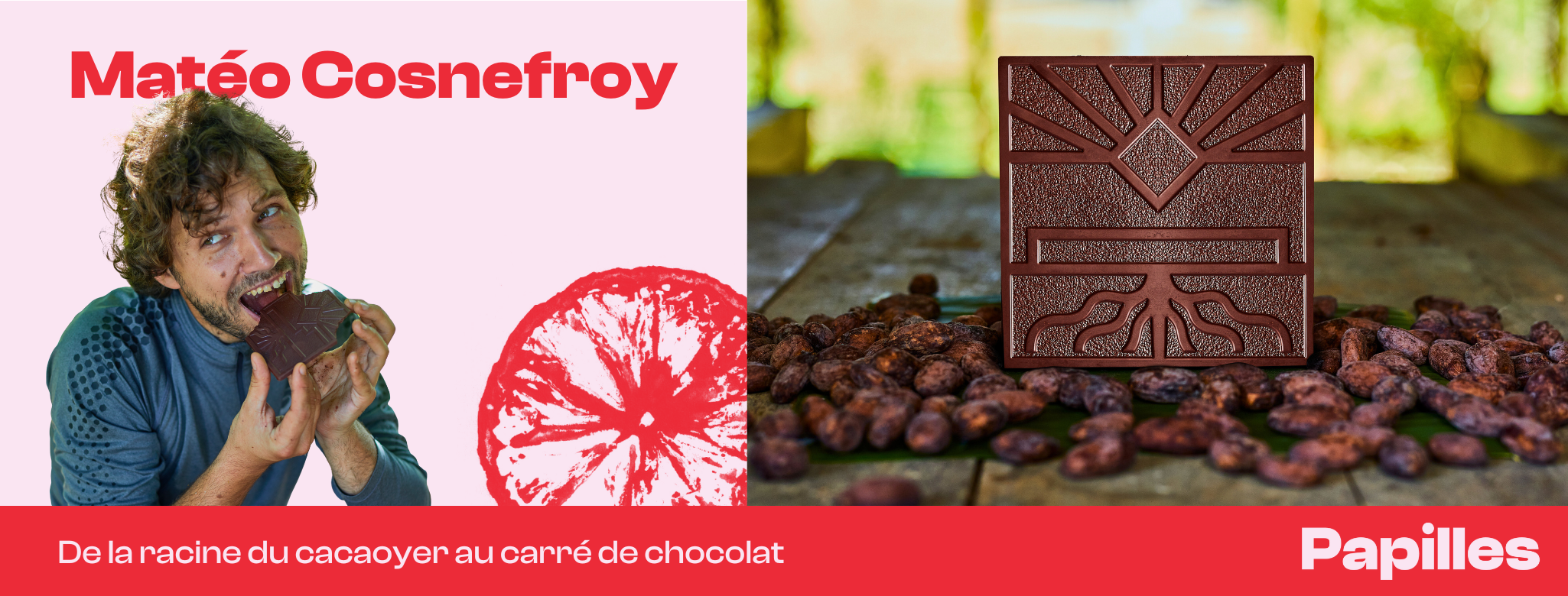 C’est l’histoire de Matéo Cosnefroy, un ingénieur agronome qui découvre le cacao un peu par hasard au Pérou, via l’agroforesterie. Pour la première fois, il goûte une cabosse de cacao toute fraîche. Et c’est une révélation. Lui qui n’aimait pas spécialement le chocolat, il en découvre la vraie saveur. Alors quelques années plus tard, avec son ami Jimy, lui aussi ingénieur agronome et qui hérite de la plantation familiale au Pérou, ils décident de créer Racine Carrée.